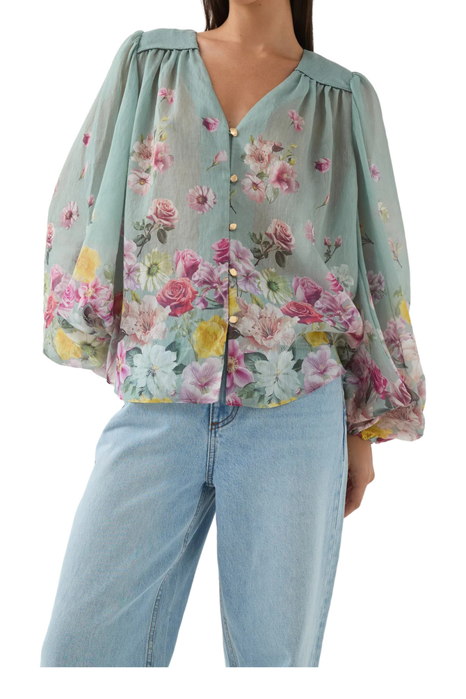Dreamscape Blouse - Mist Collage Floral