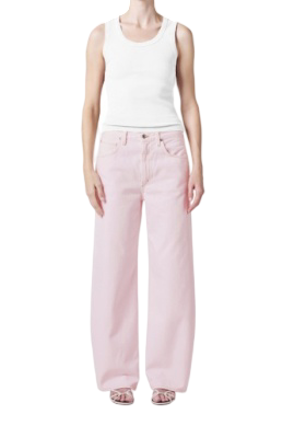 An updated twist on the barrel leg trend. This fit offers a comfortable and easy top block with a mid-rise waist. The sleek, low curved out seam gently tapers down to the ankle for a subtle yet sophisticated look.