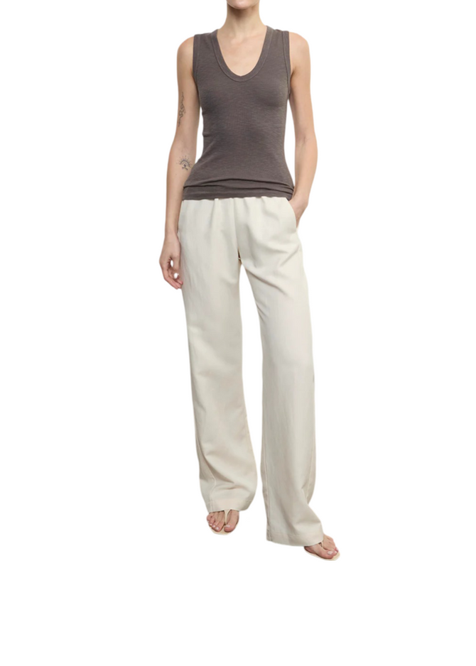 This pant is crafted from Tencel linen twill, which gives it a graceful drape and ensures comfort through breathability, making it a versatile choice for various occasions. Featuring a mid-rise and side pocket, the Twill Everywhere Pant is a perfect balance of style and function.