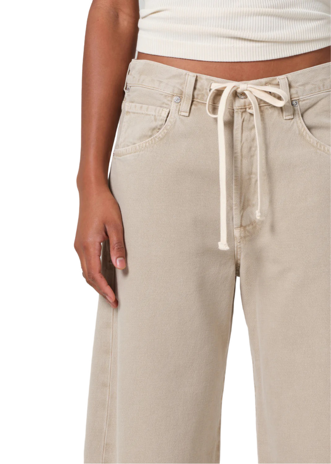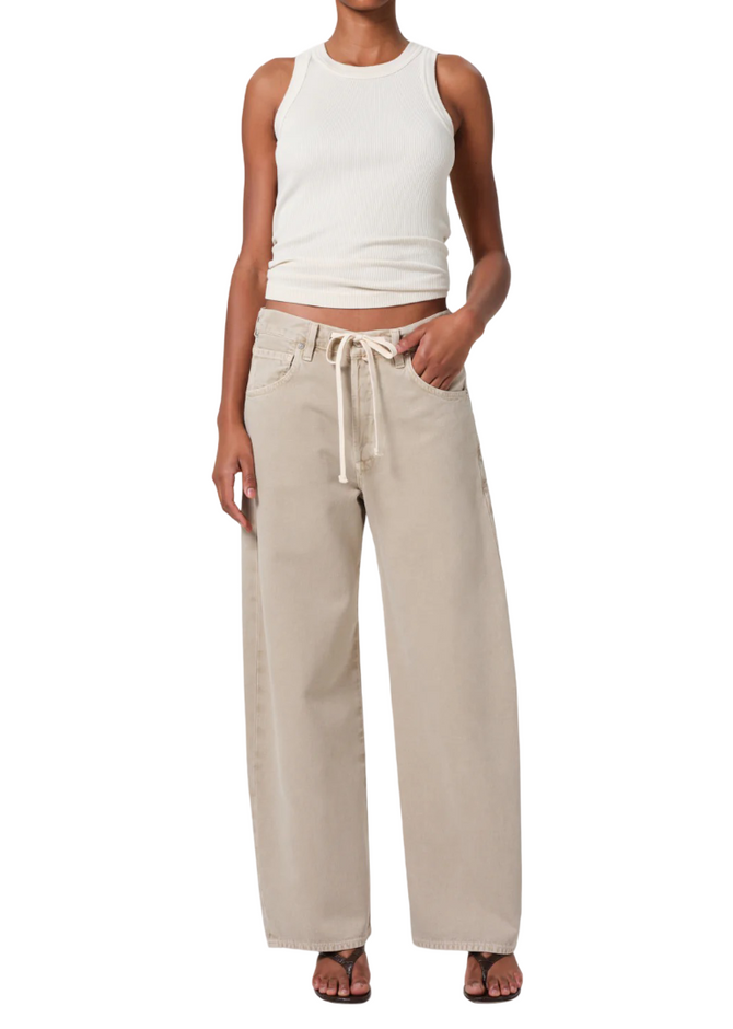 The Brynn Drawstring Trouser is the unofficial beach jean—relaxed, effortless, and made for sun-soaked days. This trouser features a comfortable drawstring waist and an easy, laid-back fit. Pair it with tonal separates or a breezy tank for a look that moves seamlessly from the sand to the street. Fits true to size.