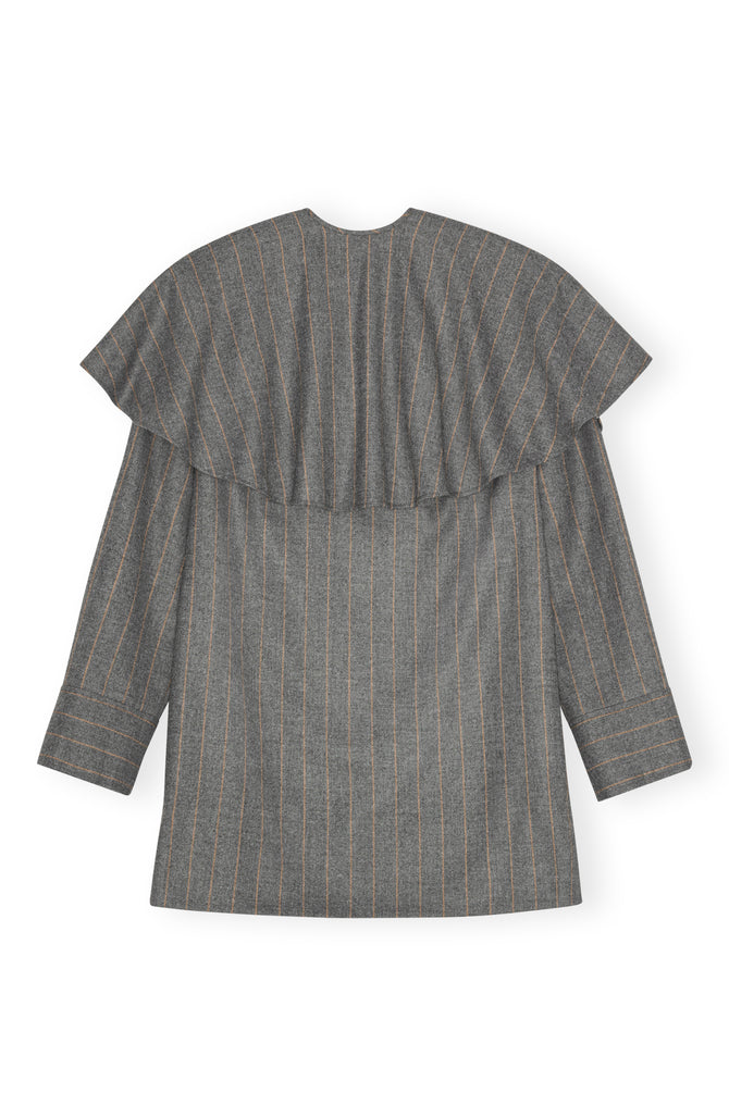 Brushed Wool Stripe Circle Collar Mini Dress - Pewter