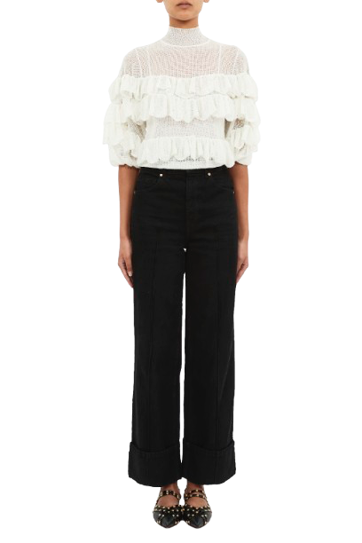 Corinna Mock Neck Tiered Ruffle Top - Cowrie