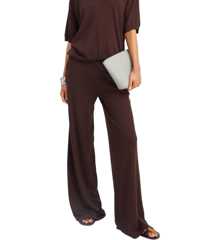 These fine-knit lightweight cashmere pants are a lounge favorite. This wide-leg silhouette features a high-rise elastic waistband that naturally cinches your waistline for a flattering fit you can wear all day long. Made in our high-quality, ultrasoft Mongolian yarn, you'll fall in love with these pants, as their elegant drape makes them look like a dress pant, but they feel like a sweatpant. Pair them with our matching cashmere tees or sweaters for the perfect elevated lounge look.