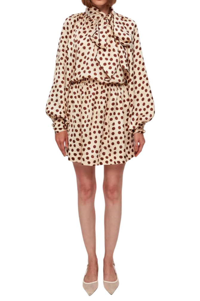 Feminine drama in a matching set. The blouse features a voluminous tie neckline and billowed sleeves that gather softly at the cuffs, while the matching skirt is cut with a gently elasticated waist and soft drape. Printed in Espresso Reverie, this duo blends playful polish with day-to-night versatility.