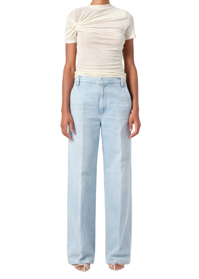 The Shona features a close-to-the-body high-rise waist that transitions into a trouser-pressed full-length fit. It feels like weightless regenerative cotton that grows softer with each wear. Fits true to size.