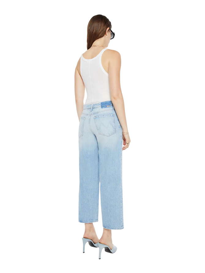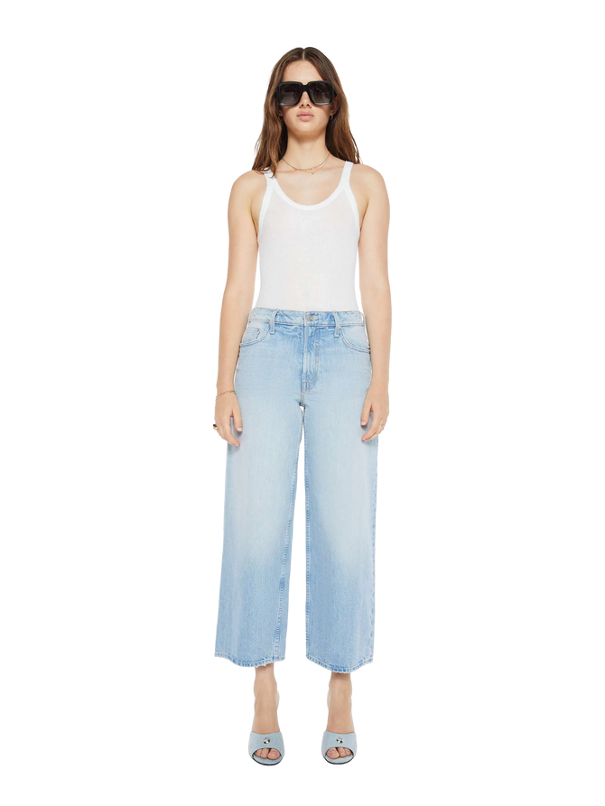 Back on track. Slouchy, high-waisted jeans with a loose wide leg, an ankle-length inseam and a clean hem. Made from rigid SUPERIOR denim, Back Pedal is a light blue with subtle whiskering, fading and distressed details throughout.