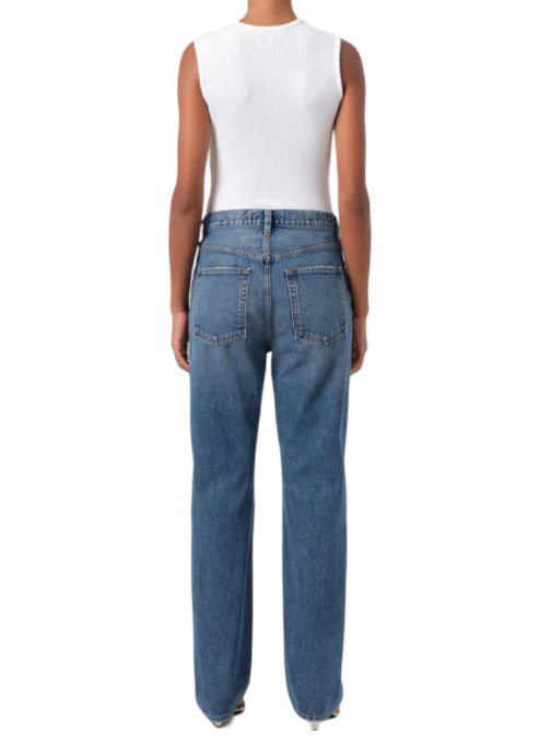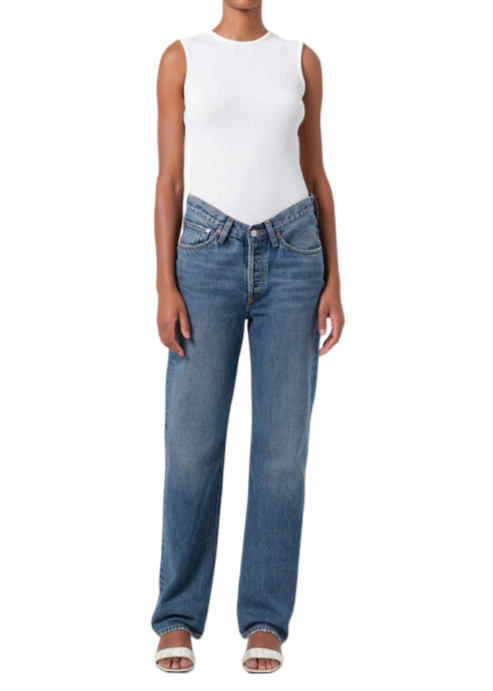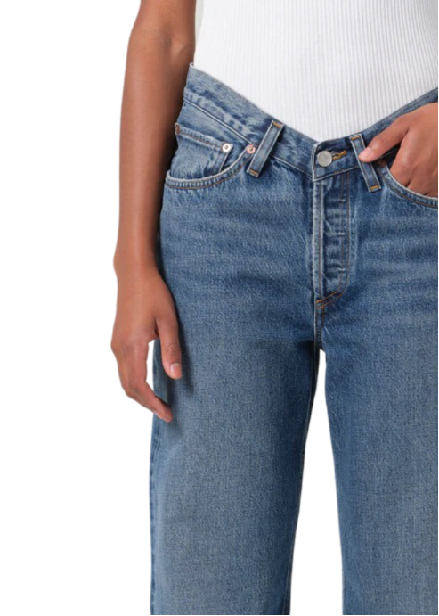 Inspired by the best-selling Kelly jean. This true to size fit high-rise relaxed, straight features a vintage-inspired extended inseam and sharp pitched v-waist.